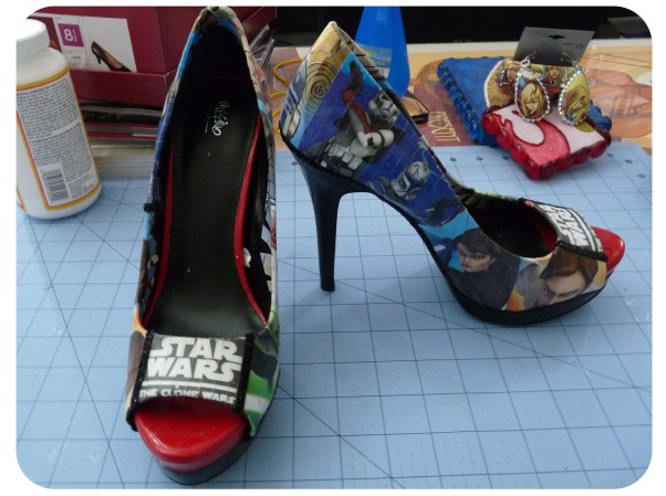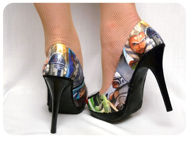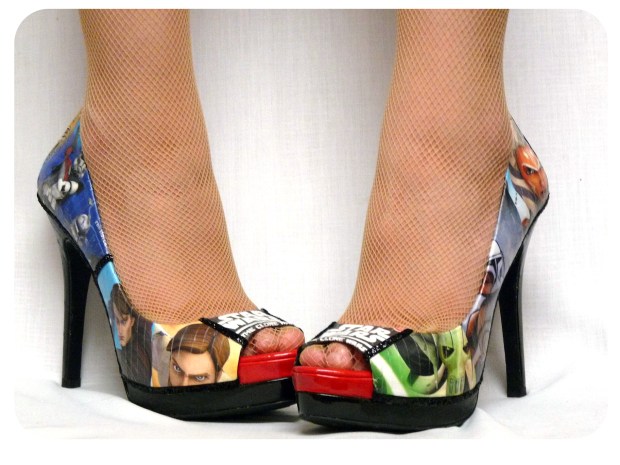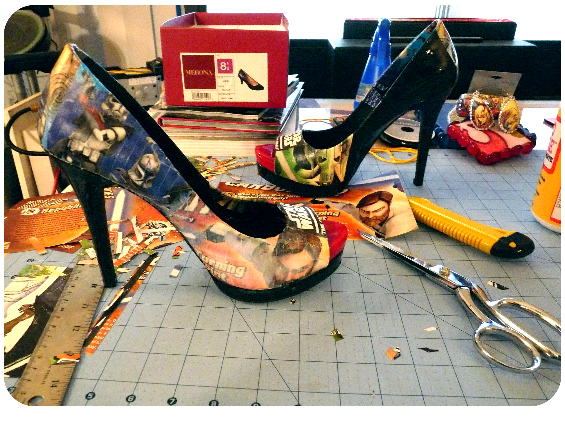 This is the first of many DIY posts we hope to do. In honor of May 4th, “Star Wars Day”, here’s a fun decoupage shoe tutorial that shows how you too can sport your own pair of Star Wars heels or flats.
