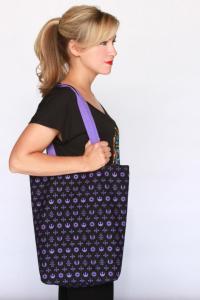 That’s right, this company is barely 2 years old, but it’s hit the ground running and never lost momentum. Surely one of the keys to Her Universe’s success is that its creator, Ashley Eckstein (voice of Ahsoka Tano on Star Wars: The Clone Wars), actively listens and considers the suggestions and feedback from buyers. She wants to make what we want to buy, and she’s been doing just that! No longer do women have to settle for men’s style shirts and designs because that’s all there is, because now it’s NOT all there is! Her Universe provides clothing meant for a woman’s shape, with art and graphics that appeal specifically to us. Comfy, feminine hoodies, cute, charming jewelry, and now even a simple but chic and useful tote bag!