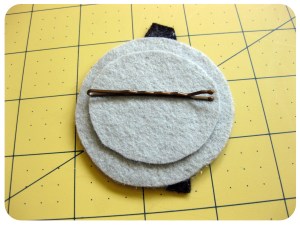 7. To add a little more support and stiffness, I added an extra circle of felt to the back. Lastly, I used some crazy glue to attach the bobby pin to the back of the felt logo.