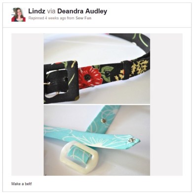 Other than that, I’m pretty proud of the way it turned out. What do you think? Anyone else love Pinterest? What are your favorite things to pin? Have you added ours yet? I think I also might want to try my hand at some other belts like this one, or maybe this one.