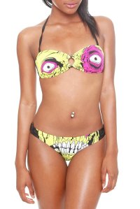 If you’re looking for something with a bit more bite, these zombie bikinis from Iron Fist Clothing (also carried at Hot Topic) definitely fit the bill. You can even buy matching shoes!