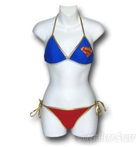 First comes this collection of DC comic swimsuits from Super Hero Stuff. They carry bikinis, monokinis, and board shorts featuring Super Girl, Wonder Woman, and Batman.