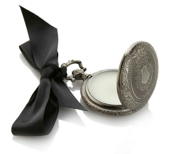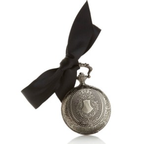 This lovely pocket watch case contains both a mirror and a jasmine scented perfume wax.