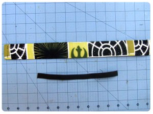 Cut out a strip of fabric and sew it into a tube. Turn it right-side out and insert the belt boning. Again, don’t be afraid to trim the boning if your tube of fabric is too small to fit around the boning. My fabric tube was too small for both headbands I was working on so instead of cutting and sewing up a new tube of fabric, I just trimmed down the boning.