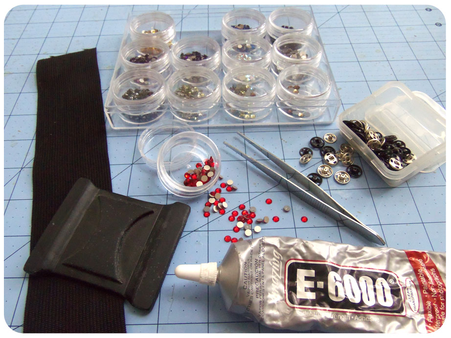 Aside from stocking up on a variety of colored rhinestones, I already had all the supplies lying around the house for such a simple project, and for those that enjoy cosplaying, or sewing/crafting in general, I’m sure most of you have this stuff as well.