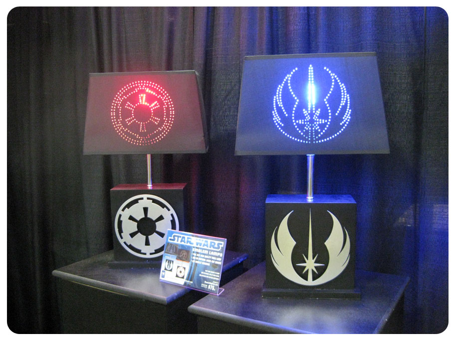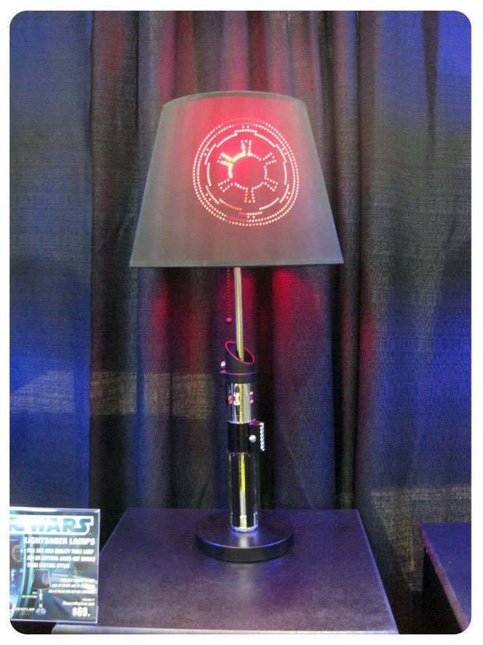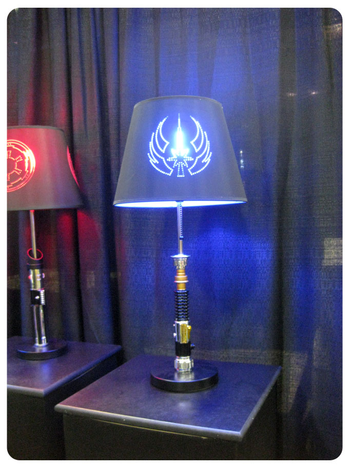 Right around the corner, I spotted these light saber lamps that would make a great geek statement in any home.