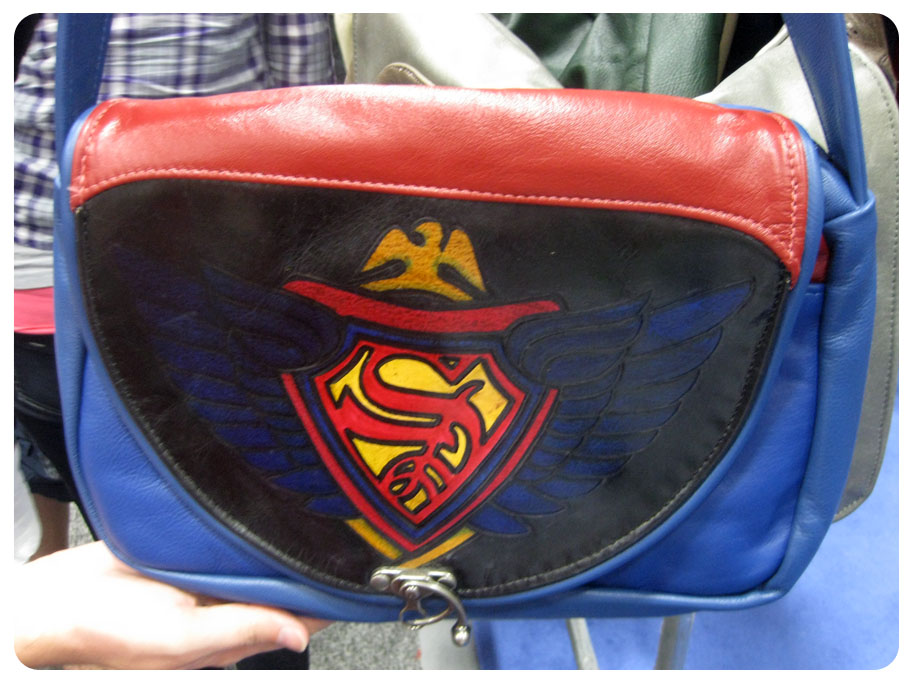 While walking by Pendragon Costumes, I spotted these lovely superhero leather bags.