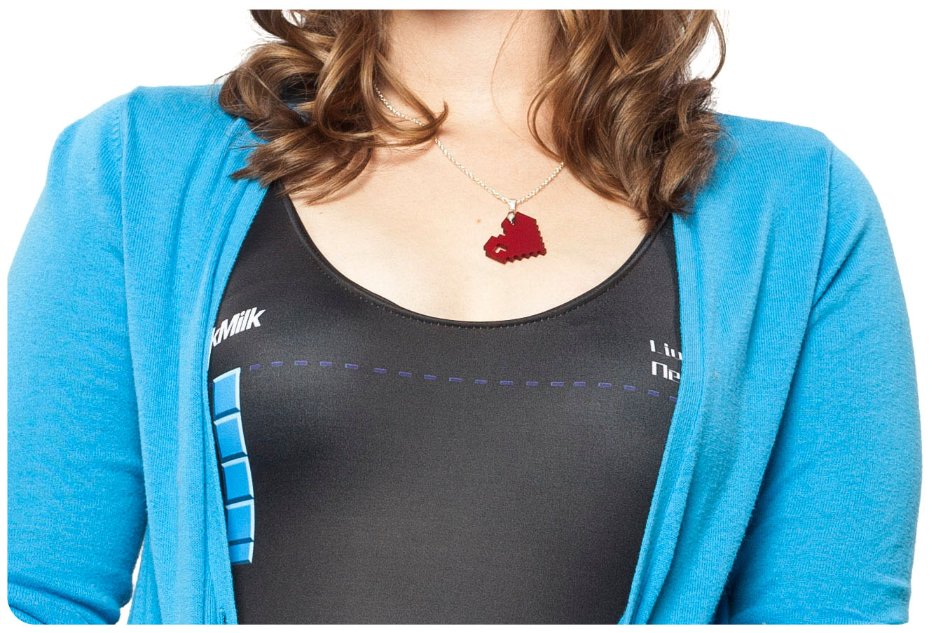 - I bought the 8 bit heart necklace on Etsy from House of Darkly. There’s a great trend right now with laser cut acrylic jewelry, so finding something that is not only geeky but looks good is super easy. I also liked the fact that this particular seller offered me a choice of a chain or cord.