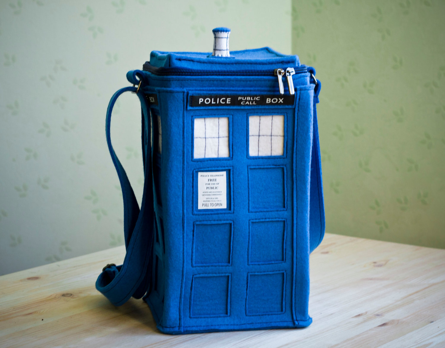 Blue felt Tardis purse by KruKruStudio