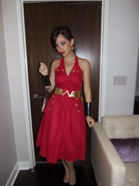 I think what I love the most about all these outfits is the endless variety. Shorts, skirts, bra top, fitted dresses, full-skirted dress, even ballgowns! Geek chic style is as varied and unique as being a geek itself. The Wonder Woman and Wonder Girl inspired dresses were particularly cute, inspired and very flattering outfits – the tiara turned headband is brilliant in its simplicity. But my personal favorite that I can’t stop blubbering about almost a week later, is the stunning Lord of the Rings dress.
