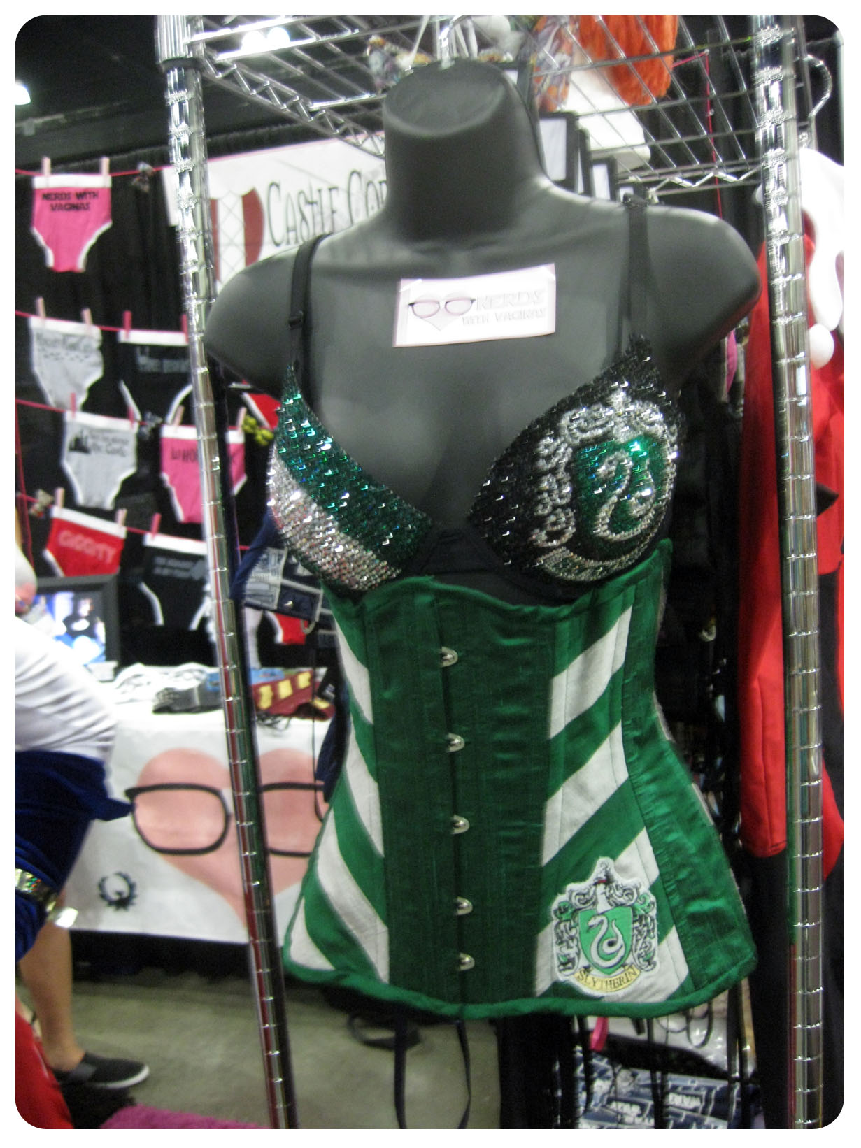 Right across the aisle, I spotted this Slytherin corset and bra top at Castle Corsetry