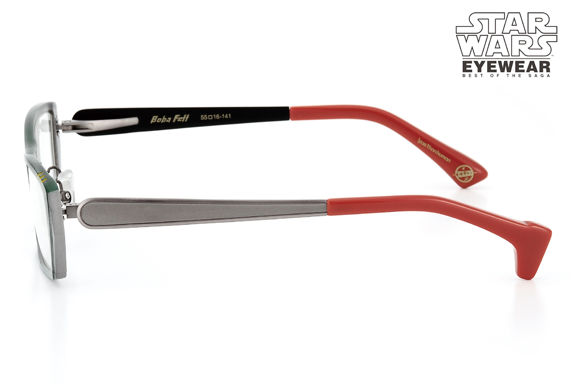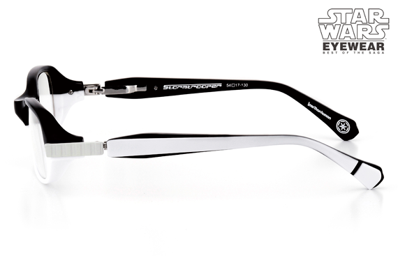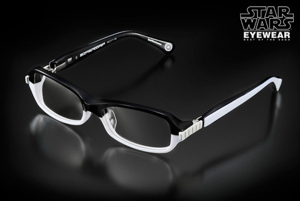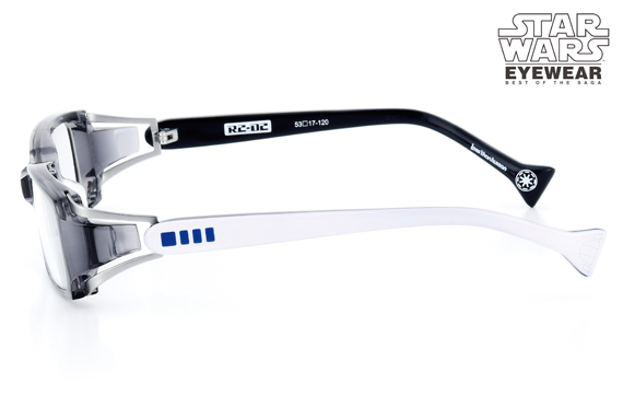Priced at $499.99, these designer frames are worth every pretty and hard-earned penny. They’re beautifully designed, with great care and attention to detail given in modeling them after their sources. Note the unique shape of the arms of some of the frames resembling: The range finder on Boba Fett’s helmet, the side profile of Artoo’s legs, and the back of the hand armor on Stormtroopers.