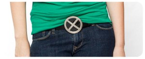 - Since many X-men costumes feature the iconic “X” symbol, I wanted to add that element to my outfit. This belt buckle fit that bill, and I paired it with a simple black belt.