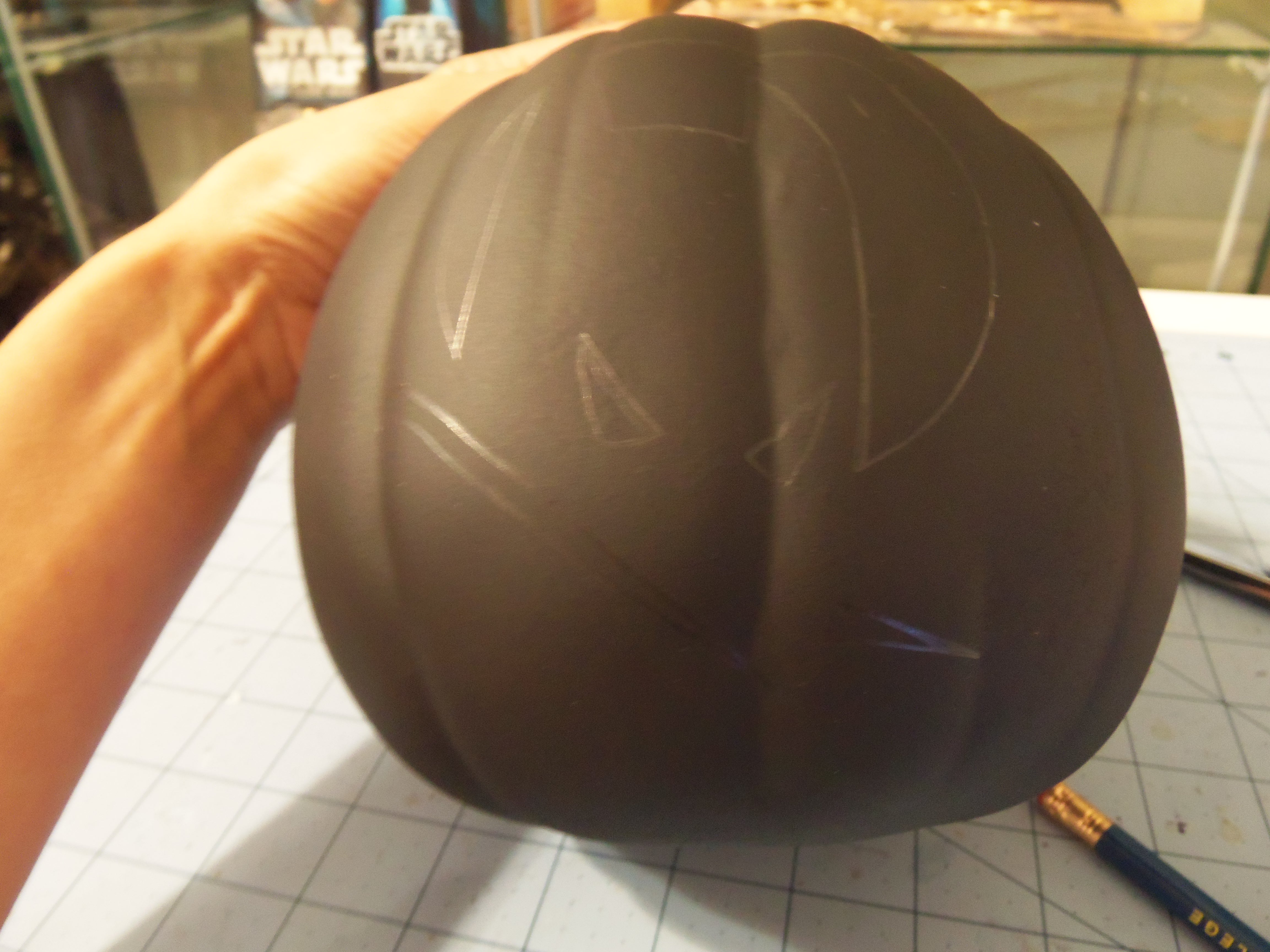 Before I drew the stencil onto my pumpkin, I decided I wanted my pumpkin to be black. I love the classic and familiar look of an orange pumpkin, but black suited my Batman theme better, and a black pumpkin is a lot easier to keep around as a decoration past the Halloween season then an orange pumpkin is. Black goes with everything!