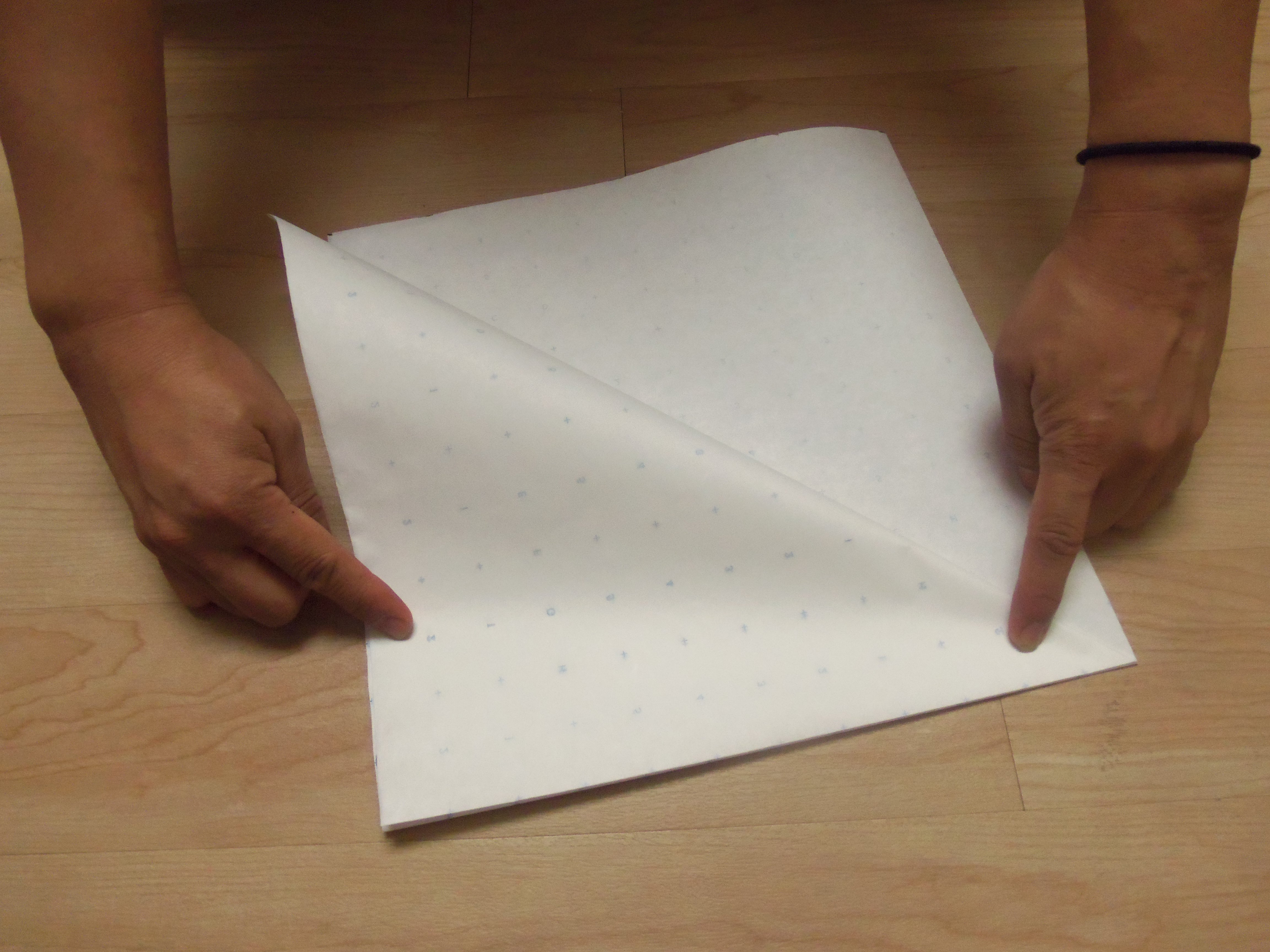 I folded the square in half width wise, then once more length wise. Then I folded back half a layer on either side so that it was now a triangle.