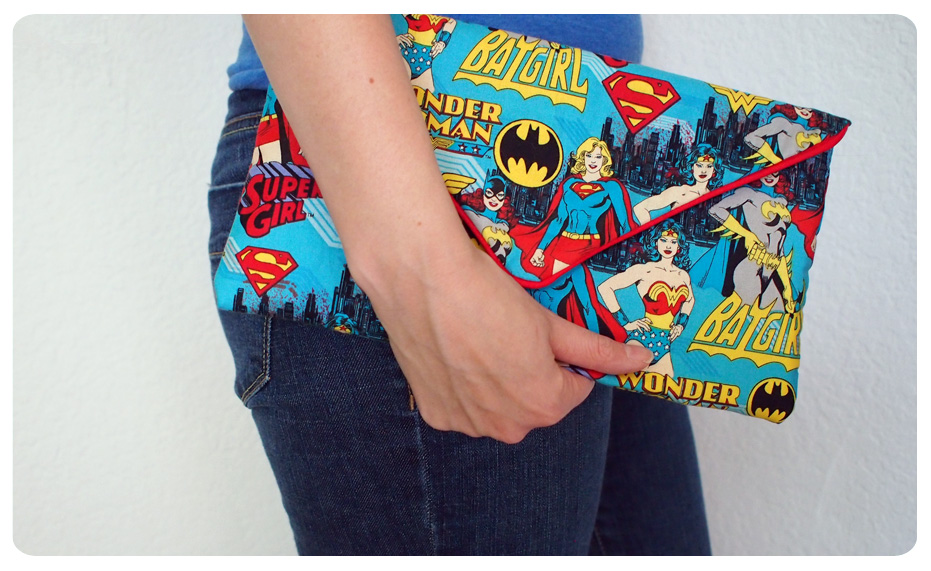 […] comic-crafting continues! This week I came across THIS adorable super-hero envelope clutch on Pinterest and immediately headed to the fabric store. […]