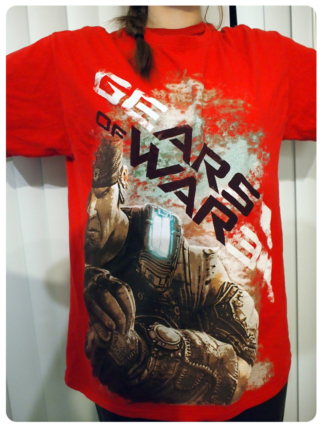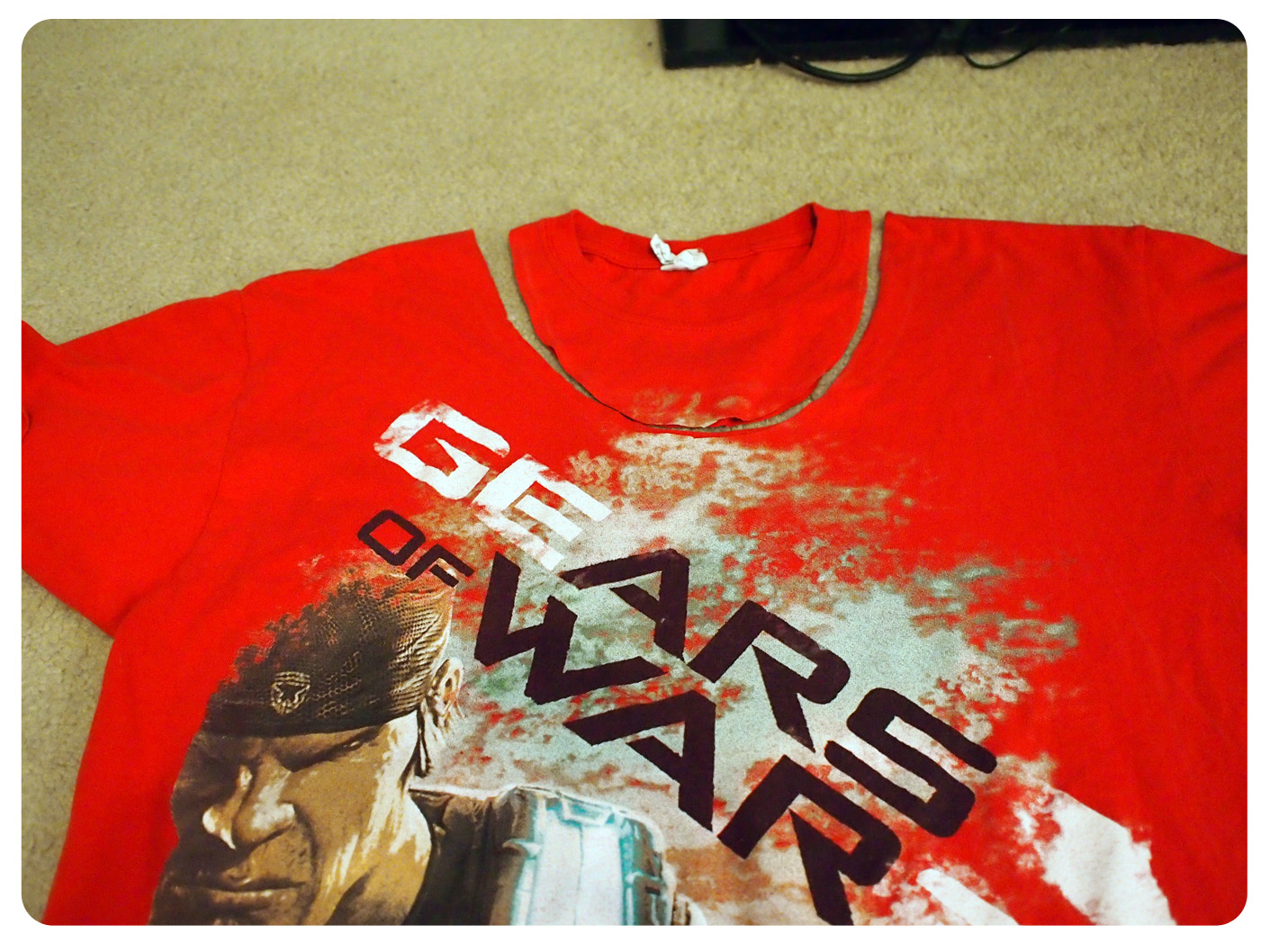 Sometimes I’ll pick up something, like a shirt, without a clear idea in mind of what I’m going to do with it. That definitely happened when I went thrifting and found this extra large Gears of War shirt (one of my favorite games!). However, once I went to my place of inspiration, Pinterest, I knew I had to turn the shirt into a fun tank.