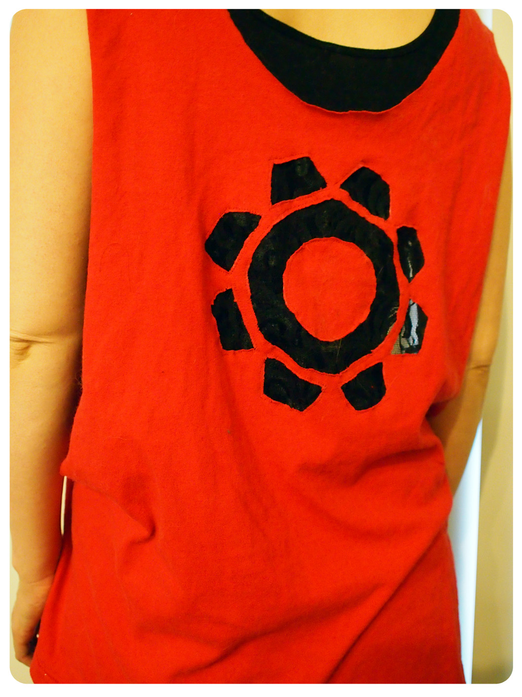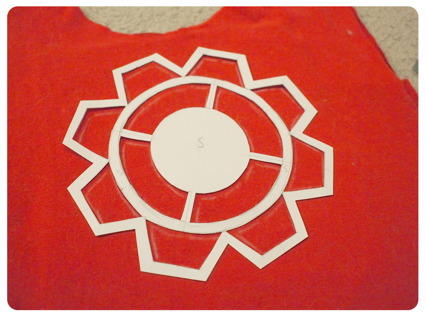 I don’t have photos of the sewing, but you should be able to see the stitches in the photos below. Lastly, I cut out those small red pieces so that the inner circle would be one big piece.