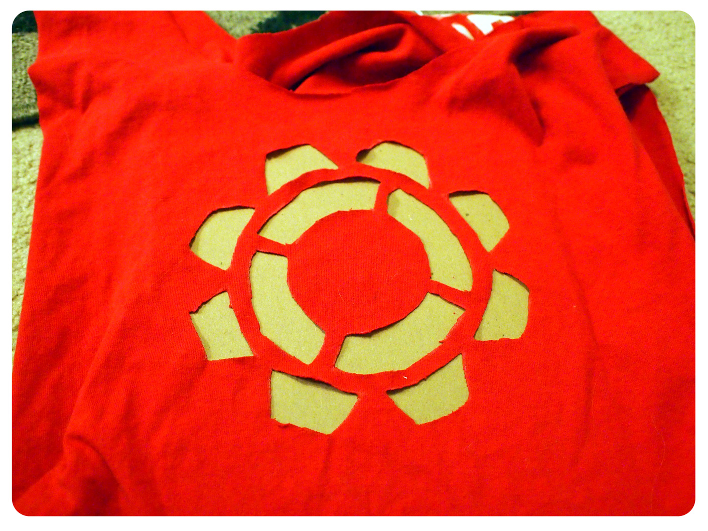 I then cut out the stencil and then traced it onto the back of my shirt. I suggest putting a book or hard surface under the shirt so it’s easier to draw on.