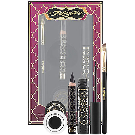 To compliment those luscious eye shadows, you can pick up the Three Wishes Eyeliner which features liquid eyeliner, gel eyeliner and brush, and a chunky pencil liner.