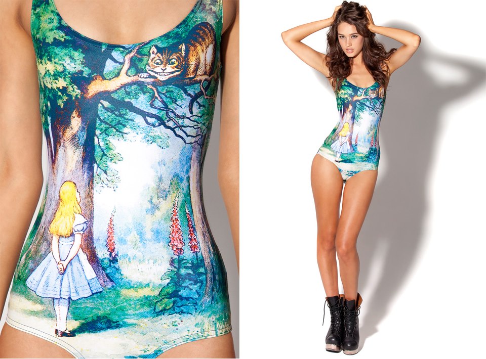 If you happen to be more of a literary geek, they’re also releasing this fantastic Alice in Wonderland Cheshire Cat swim.