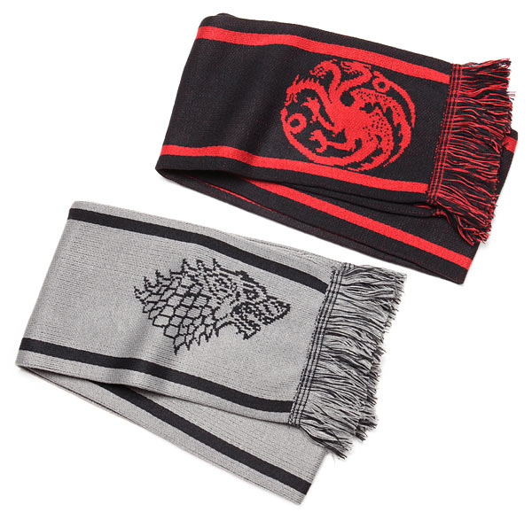 These ThinkGeek scarves are my favored recommendation over the HBO Scarves, as the HBO scarves aren’t nearly as stylish with their blatant “GAME OF THRONES” logo text under the House names.