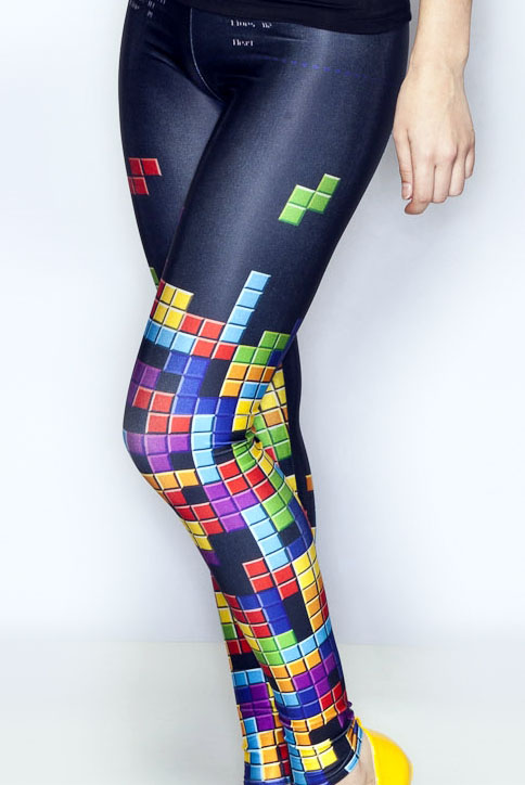 - The “Retro Gamer” (read: Tetris!) leggings from Black Milk is one of their early, unlicensed, geeky pieces. Super geeky, but totally super stylish, the bold color of the Tetris blocks make it easy to pair with similarly colored accessories, footwear and tops. To keep the focus on the Tetris pattern, I went with a black top. Unfortunately these are now one of their coveted Museum pieces, so if you want these leggings, you’ll need to scout eBay or the Black Milk Swap/Sell/Buy group on Facebook.