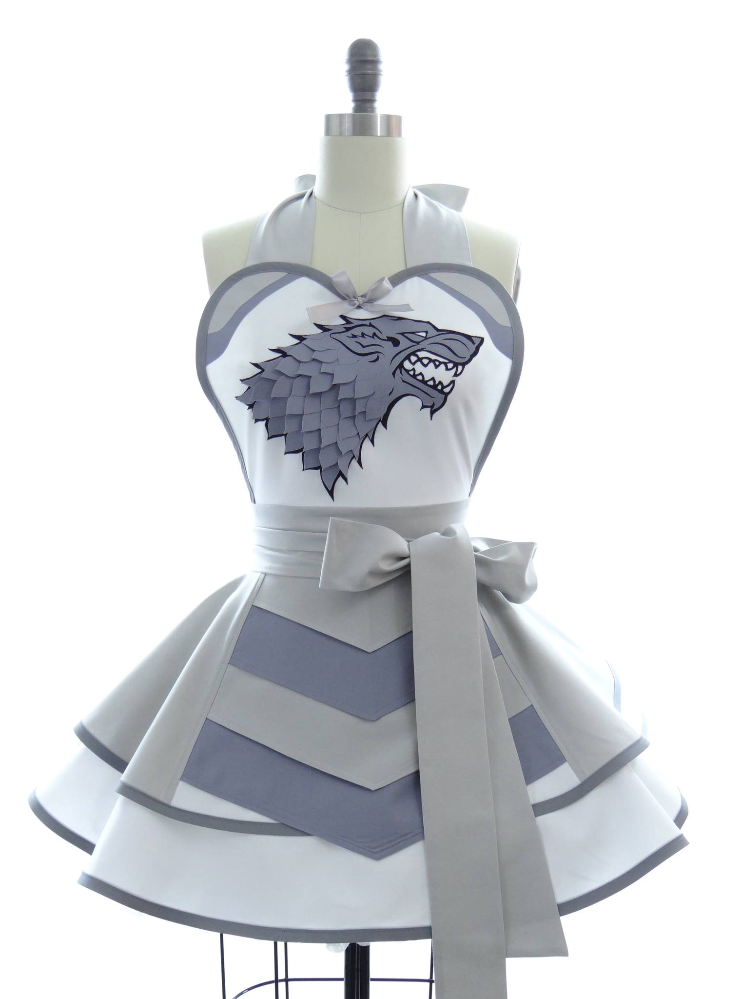 Do you already have a favorite from their existing apron designs? Or have ideas for a custom apron you’d love them to make? I’m a little weak at the knees for the House Stark one, the immense amount of detail work on it is staggering! Share your faves with us on Facebook and Twitter!