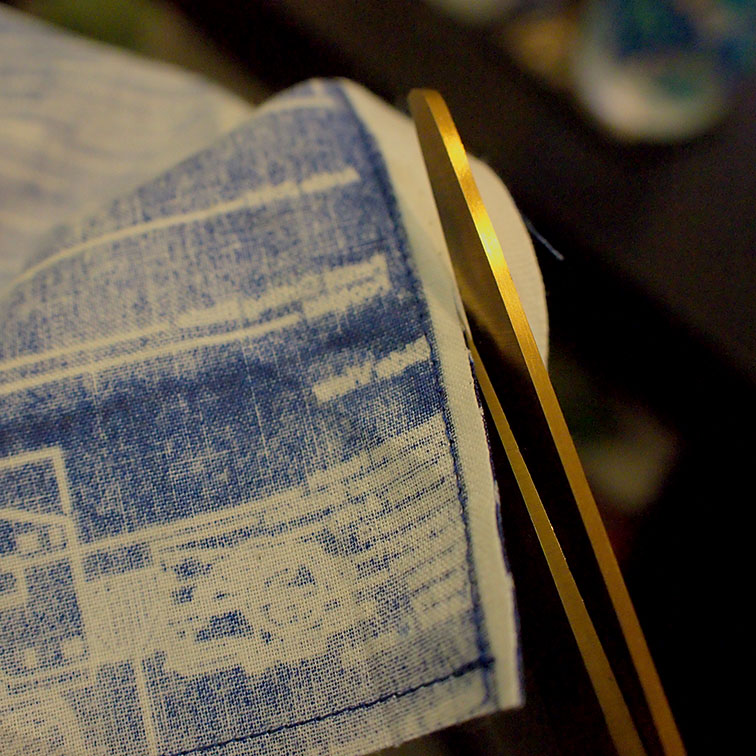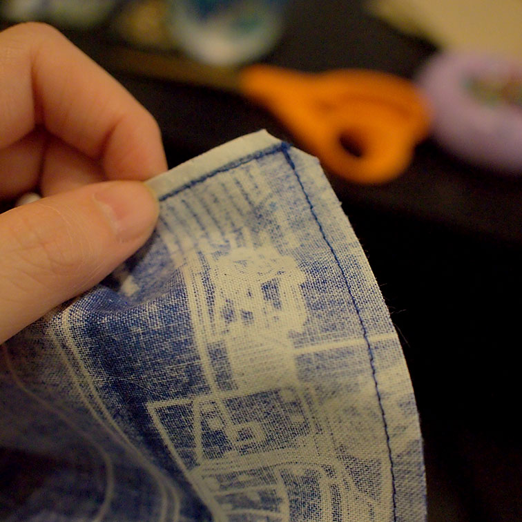 Before I flipped the scarf inside out, I cut down the extra fabric on the seams, and cut the corners so I would have a nice pointed corners.