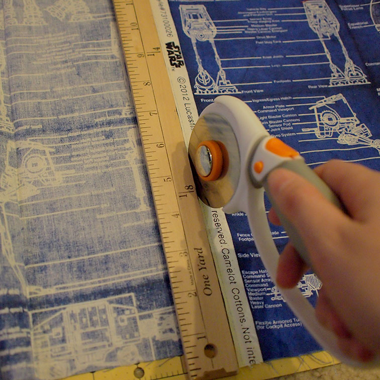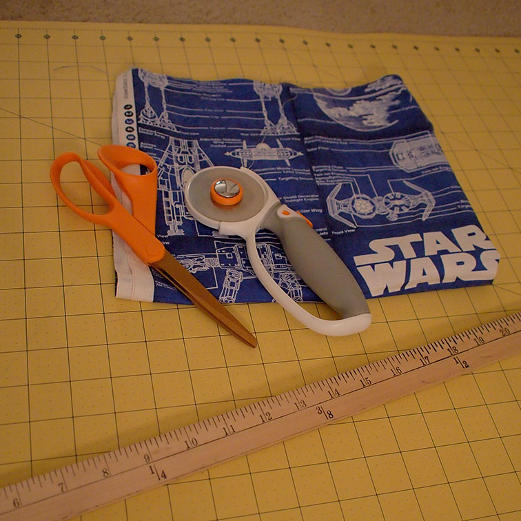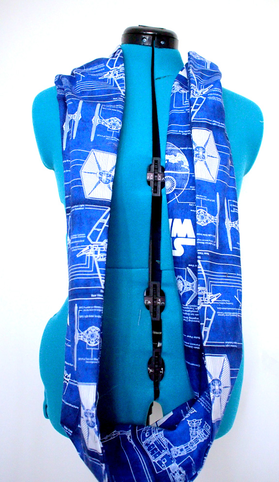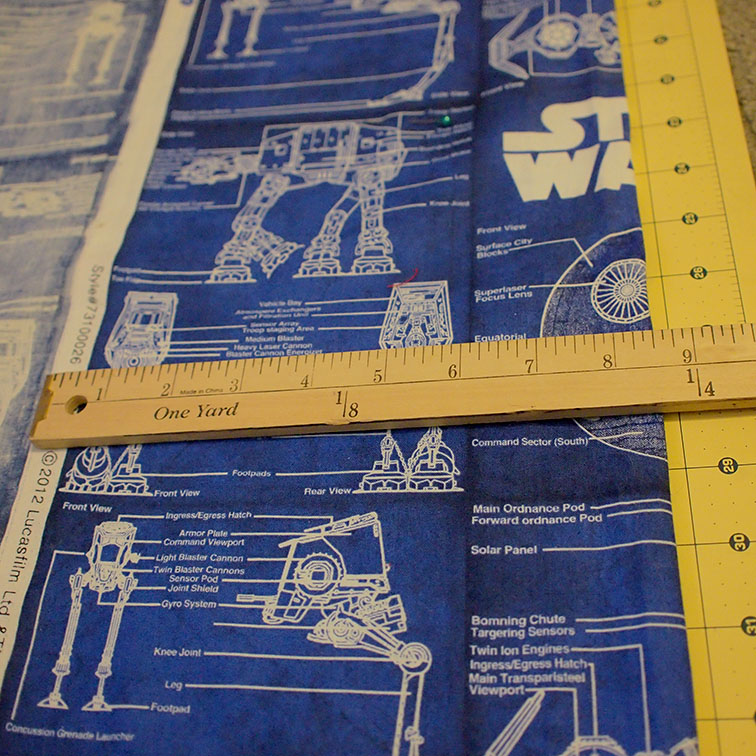 For my scarf, I wanted a fabric that had a more subtle pattern so I could match it easily. This Star Wars blueprint fabric was a perfect fit.