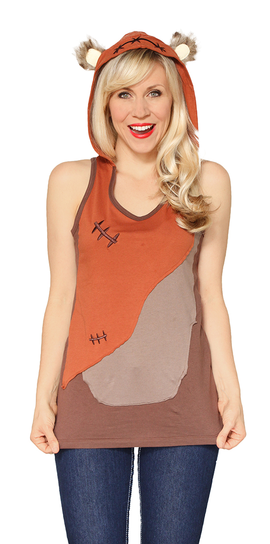 My personal favorite is this Ewok hooded tank. A little bit costumey, a little bit chic, and a whole bucket of adorable. Both Lindz and I can’t wait to get our hands on this top!