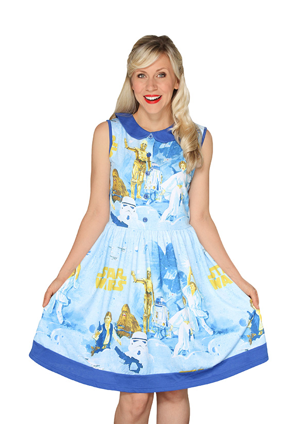 This new line of jewelry is an exciting new chapter in Her Universe’s mark on the world of fashionable geek apparel and accessories. So is the new retro style dress featuring the iconic 70s bed sheet print. Making dresses out of bed sheets is a well known staple amongst the geek fashion community, as for decades they were usually the only source of geek themed fabric available, and ready-made dresses made out of geeky prints was just a dream! I find this dress from Her Universe a touching and appreciative nod to the history of fangirl fashion.