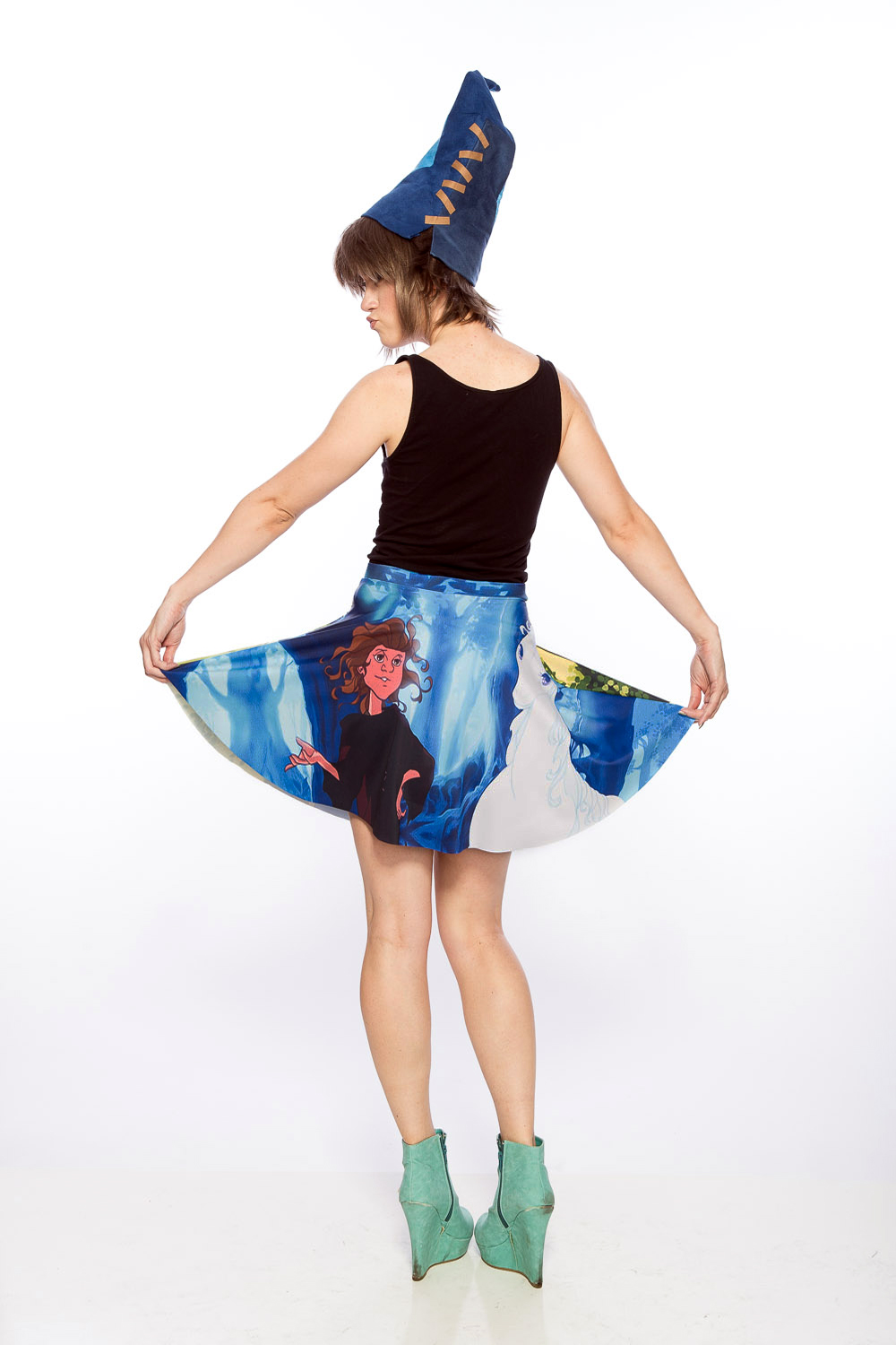 Their first collection has released today, and includes 15 pieces, ranging from mini-dresses, A-Line dresses, skirts, leggings, and poncho tanks. The garments feature stills from the film, as well as artwork from the graphic novel. Yes, that sound you hear is your childhood self screaming for joy.