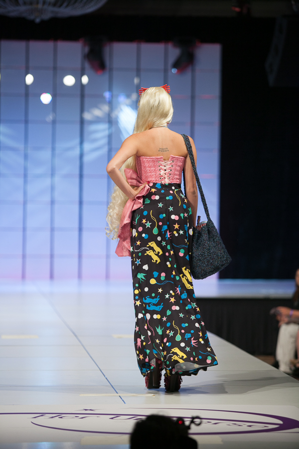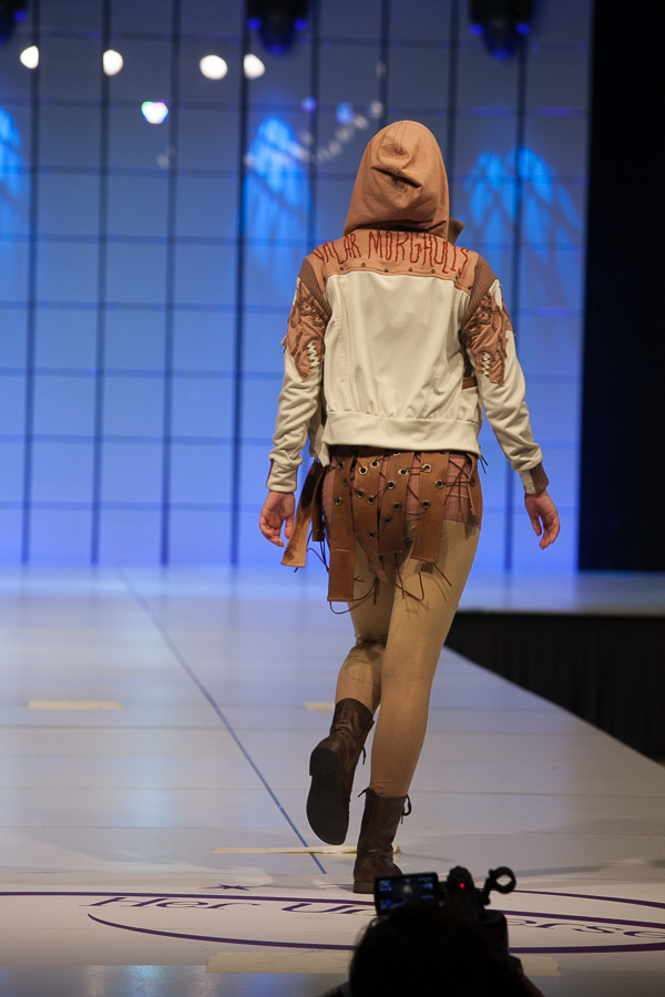The designs then premiered on Thursday evening of SDCC on a 70 foot runway in front of an audience of 1000 people. Once the show ended, two winners, one audience and one judge, were chosen to be co-designers with Her Universe on a new line for