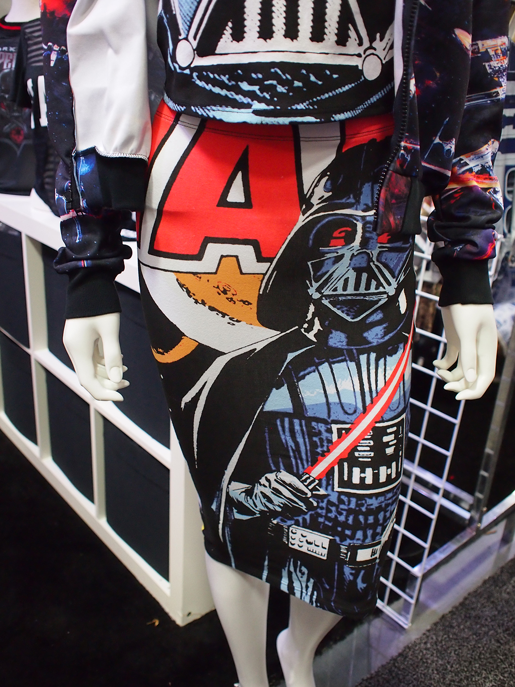 As we reported in April, Black Milk Clothing was going to be at the con, so we took the opportunity to take a look at their new Disney collection up close. I have to say, at first I wasn’t really sure about the collection, but after seeing it, I really loved how vibrant all the pieces looked. The Painting the Roses Red skirt was especially nice.
