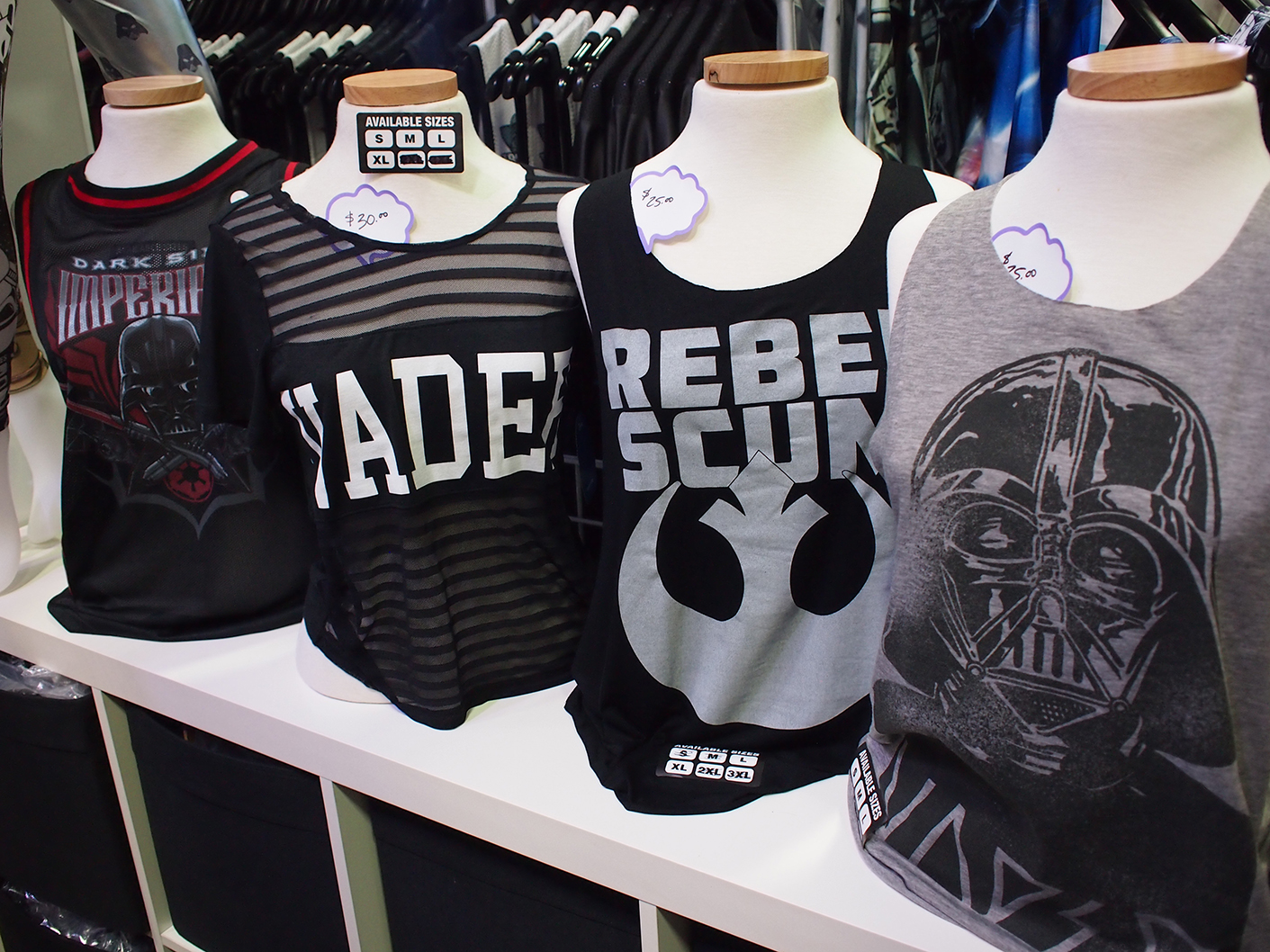 The Star Wars pavilion usually has the best and most unique selection of items, and this year was no exception. We spotted headphones, car accessories, and of course, clothes!