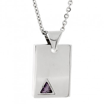 Stainless Steel Crystal Trillium Dog Tag Pendant Necklace