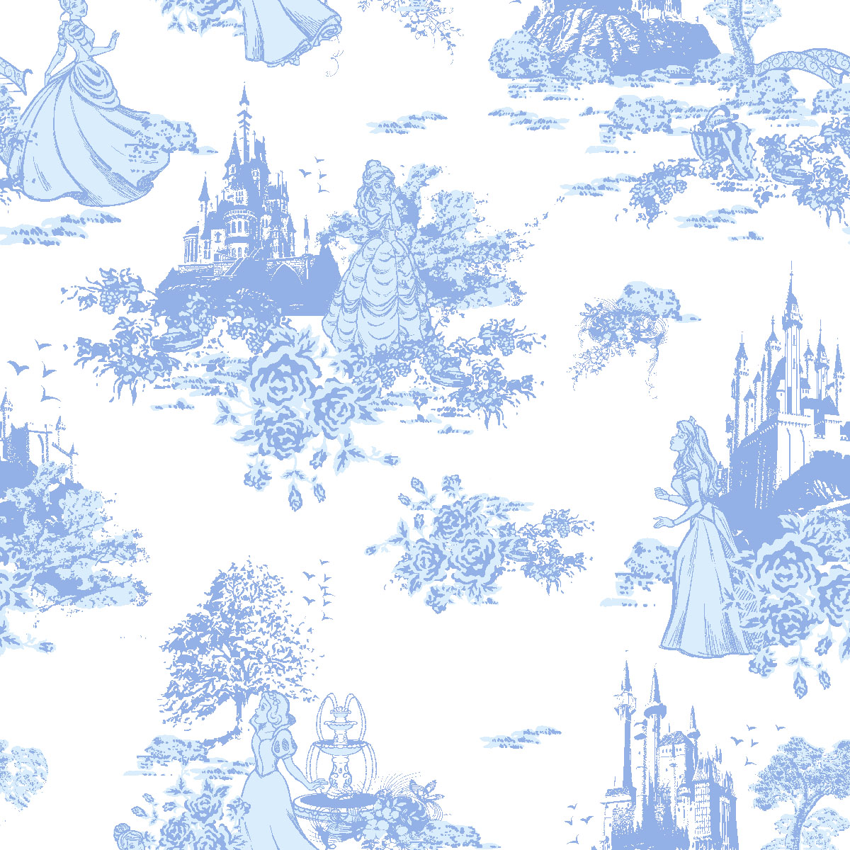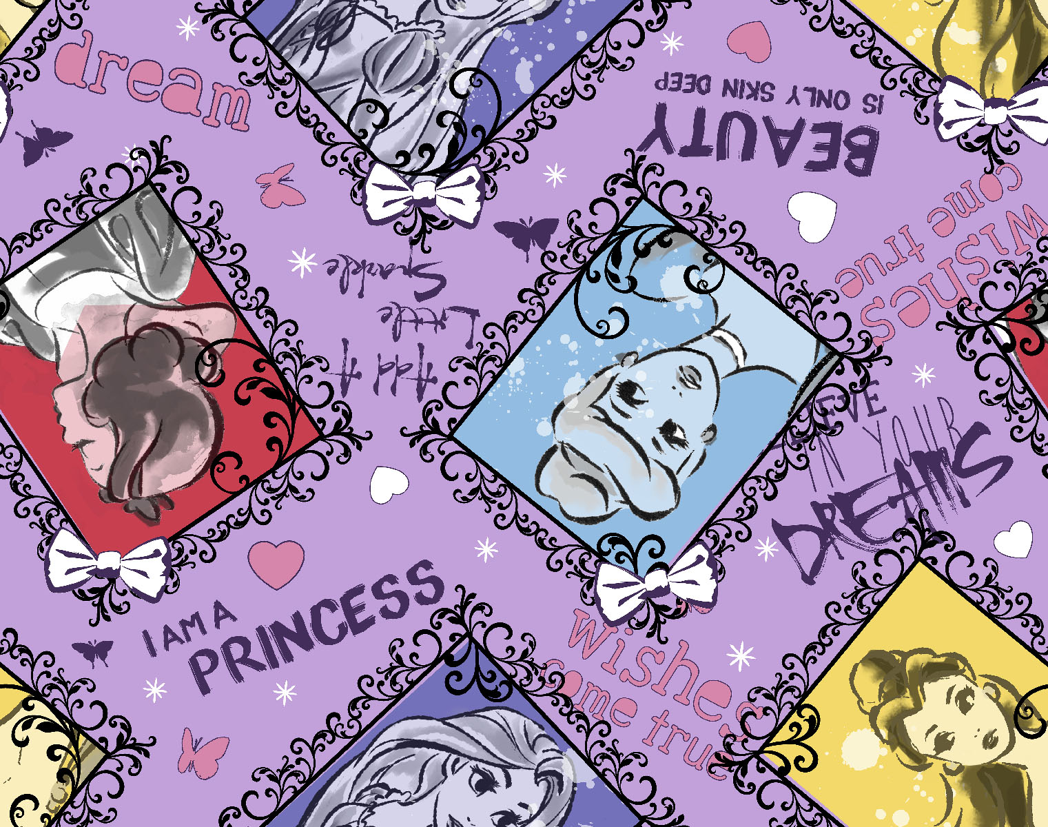 Disney Princess Toile Flannel Fabric Disney Princess Sketch Toss Fleece Fabric