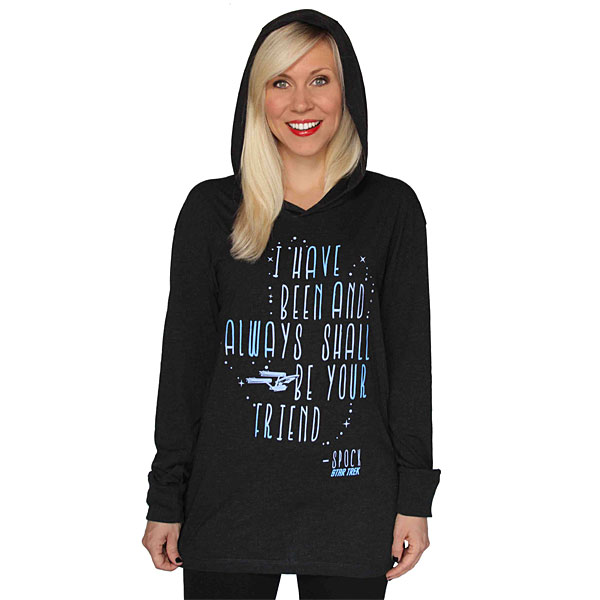 Featuring a classic logo option and two movie quote options, it’s always great to see new Trek gear for women. Not going to lie though, anyone wearing the Spock quote hooded pullover clearly wants every fellow Trekkie around them constantly bursting into tears.