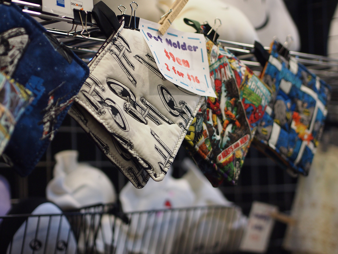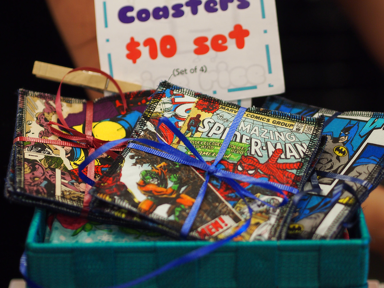Nice Rice Shop did something that was really fun, they had made-to-order skirts that you could get made at the con itself. They also had coasters and potholders with the same fabrics.