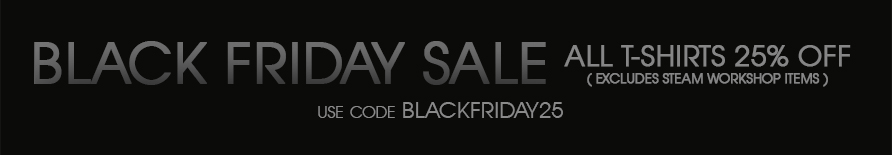 We Love Fine is offering 25% off all t-shirts, excluding Steam Workshop items. Use the code BLACKFRIDAY25. There will be other deals during the week, so make sure you sign up on the website for early access to the sales.