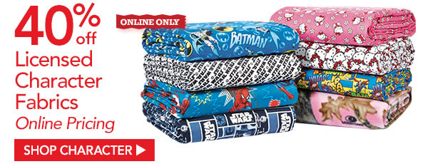 Jo-ann will be offering 40% off licensed character fabrics in addition to to free shipping on orders of $50 or more or a flat $1.99 shipping rate for all other orders. Use the code SLEIGHBELLS331