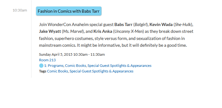 This might seem like an unusual panel to list, but we’re huge fans of Babs Tarr redesign of Batgirl’s outfit. Finally, someone who was approaching superhero clothing with realistic fashion and function in mind! This is sure to be a valuable panel to attend for those interested in costuming and geek fashion.