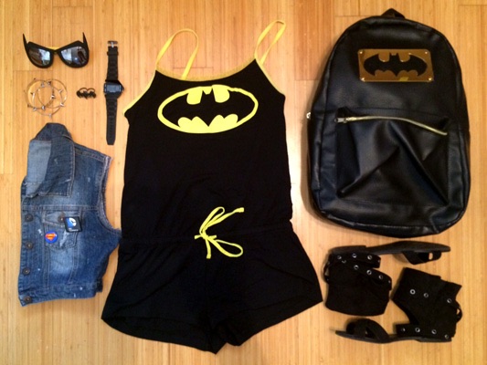 Her second set of outfits features a Batman romper from Underboss. These outfits really show off how easy it is to go from day to night with a few simple accessory changes.